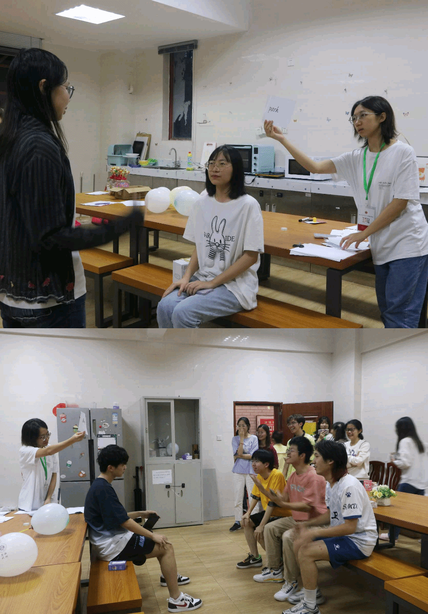 继续向里走,便能看见在陶味居内举行的你说我猜,同学们随意分组,一个猜词,其余描述,考验的是不仅是对单词的理解,还有两人的默契,现场欢声笑语不断。