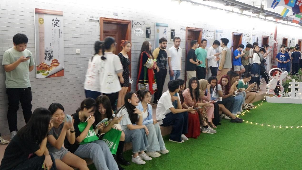现场人头涌动,同学们在不同的活动区间穿梭,热情地参与各项游戏任务。由于人数众多,不少活动区门口还排起了长队。
