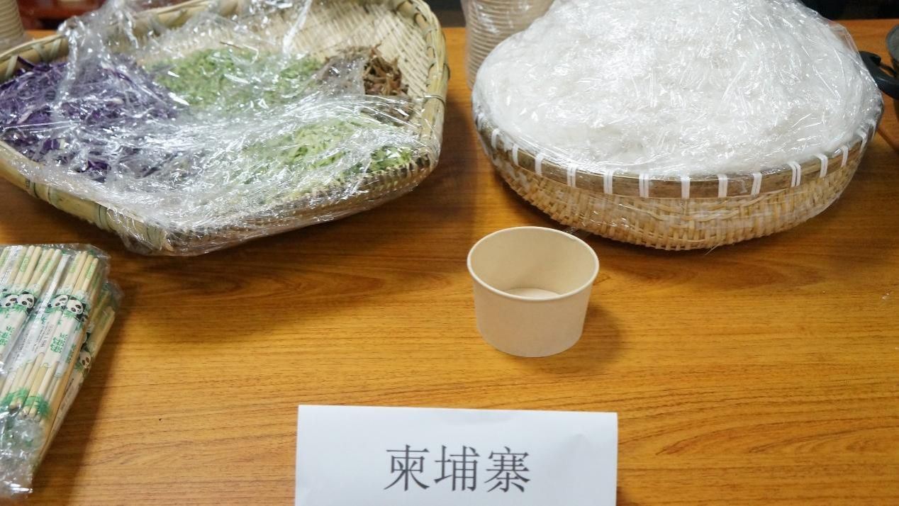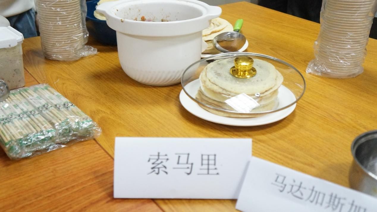 在经历了一系列有趣又有意义的小活动后,同学们终于来到了期待已久的美食区,这里有来自八个不同国家的美食,包括柬埔寨米粉、巴基斯坦的咖喱鸡肉饭、也门的阿利卡甜品以及我国的拍黄瓜等。花样众多的美食散发出不同种类的香气,在空气中飘荡、交融,令人垂涎欲滴。