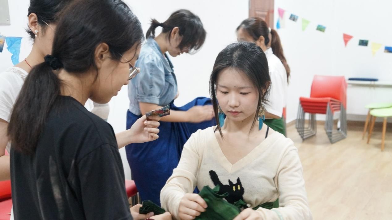 除展示外,活动还专门培训了工作人员为同学们现场教学柬埔寨传统服饰的穿法,并让参与的同学亲身体验,感受不同文化的魅力。
