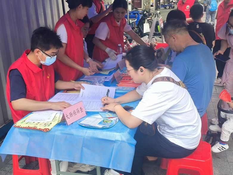 4月18日,基础医学院团委联合京溪街社区卫生服务中心、京溪街禁毒办在京溪街社区举办大肠癌筛查义诊志愿服务活动。本次活动由基础医学院团委主办、学院基层团支部共14名学生志愿者共同参与。