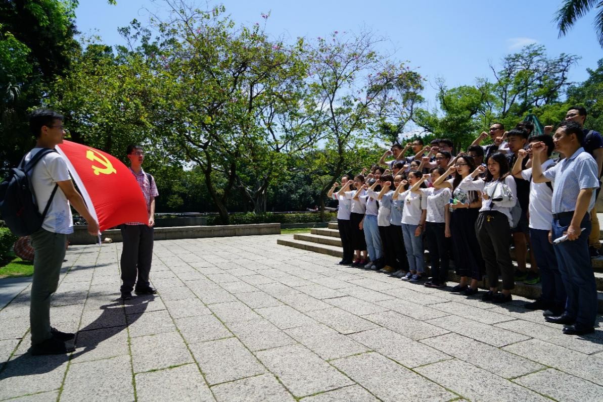 下午,大家来到鸦片战争博物馆进行学习参观。在李波的带领下,大家在林则徐雕像前进行入党宣誓。在庄严的党旗下,同学们齐声宣读入党誓言,重温入党誓词。