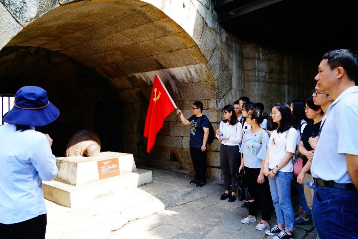 上午9时,学生党支部一行人乘车抵达东莞,以整齐的队伍、崇敬的心情参观了气势磅礴的威远炮台。在讲解员的解说下,大家了解到炮台的制作流程、材料及其作战性能等,充分认识到了炮台的强大威力和严谨结构。