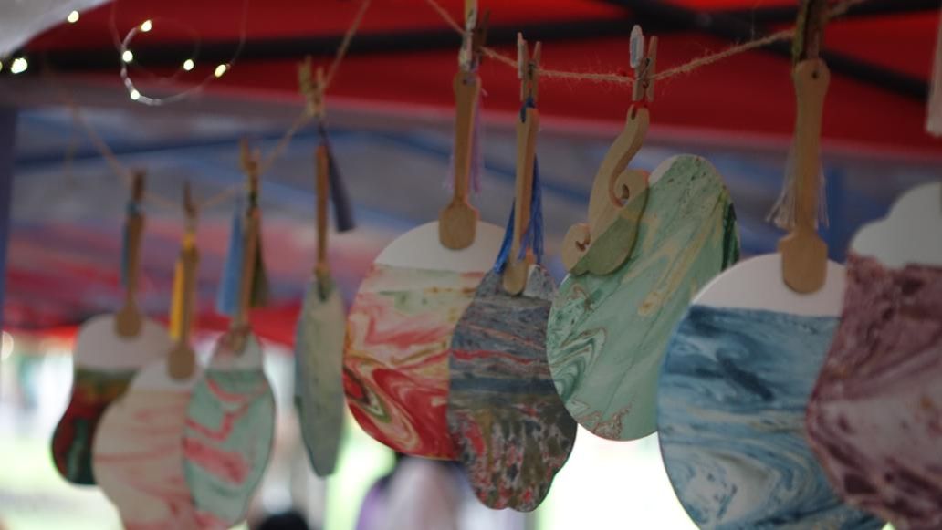 创意丰富的饰品摊位前也围满了学生,南医专属的校猫周边萌趣来袭,精美的手工穿戴甲、DIY非遗漆扇等手工小铺给整个活动增添了艺术气息。
