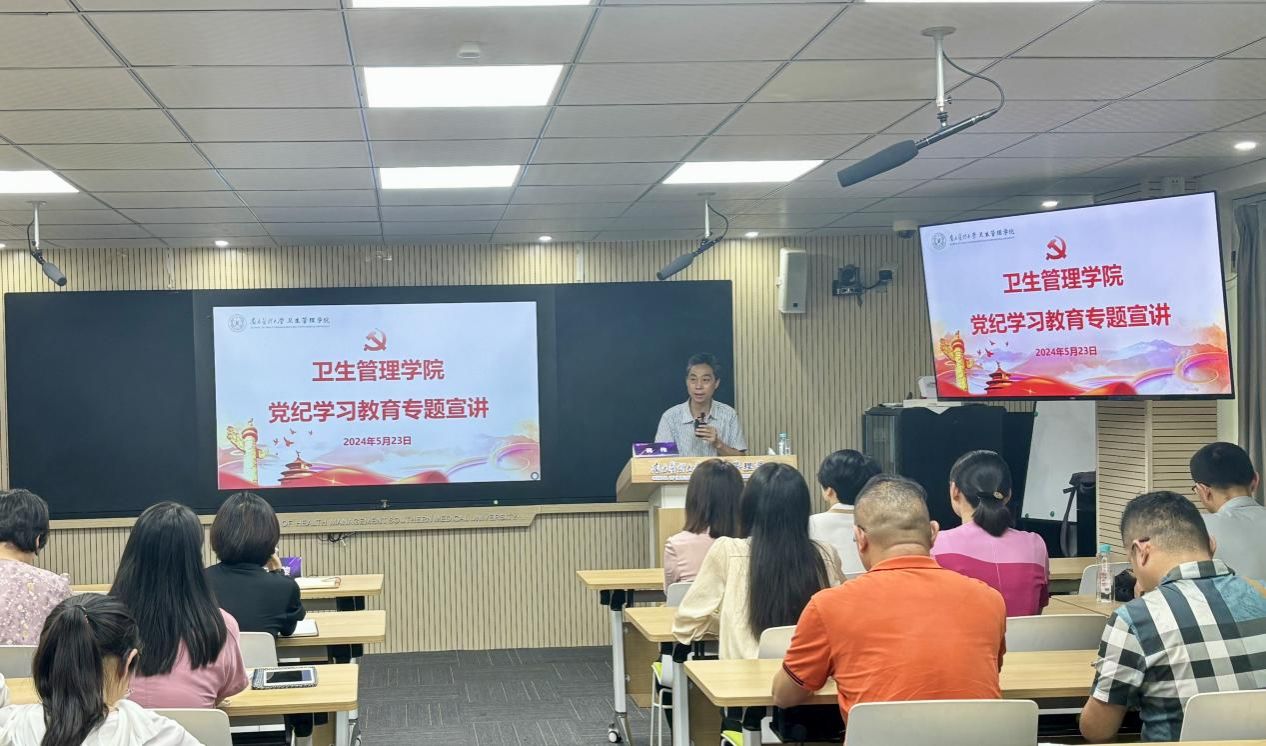 5月23日,卫生管理学院邀请学校专题宣讲团成员、马克思主义学院副教授蒋伟作党纪学习教育专题宣讲。本次专题宣讲由学院党委书记王黎主持,党委副书记张静、各党支部书记、各系办负责人和师生党员代表参加学习。