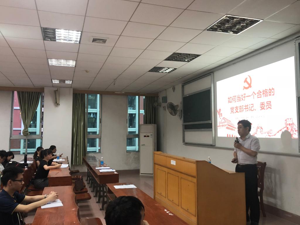 学院学生党总支书记金广主讲“基层党支部书记工作实务指导培训”,指出党支部要认真执行换届选举流程,详细讲解了换届规定与方法、选举流程以及注意事项。金广指出,支部要严格落实“三会一课”,并对学生党支部书记提出进一步要求,希望大家能把务实精神体现到日常工作中,提升工作能力,做一名合格的学生党支部干部。