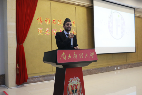 大一留学生代表高塔用流利的中文对书院的生活进行了回顾,对即将搬回本部的师兄师姐表达了祝福。他说:“书院各种节日主题活动,每次邀请我们留学生一起过,我们都感觉自己很幸运,有机会跟中国人一起过中国的节日,一起玩得开心。”。