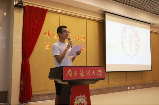 石磊作为团学联骨干代表和大二学生代表进行了发言。他说:“2016级的我们非常幸运,在我校书院制成立元年入校,成为第一批体验书院生活的学生。在博雅书院的这两年间,我们学会了分析与思考,学会了丰富与锻炼,学会了继承和创新。书院把家文化带到社区,在传统节日里举办了多种多样的社区活动,像大家记忆犹新的中秋花灯节、冬至送汤圆、粽子节、母亲节的活动,都让我感受到了节日的氛围、回忆起了家的温暖。在学术文化方面,书院自成立以来,一直把对学生的通识教育放在工作的首位,博雅书院两年来共开展博雅讲堂十八期,每一场都是妙语连珠、不容错过的精神交流。此外,书院的卓越青年骨干培训、文化大观园等等,一同构建了书院的学术文化阵地。今年开展的多场学业导师交流会,也给同学们提供了前所未有的交流机会。”