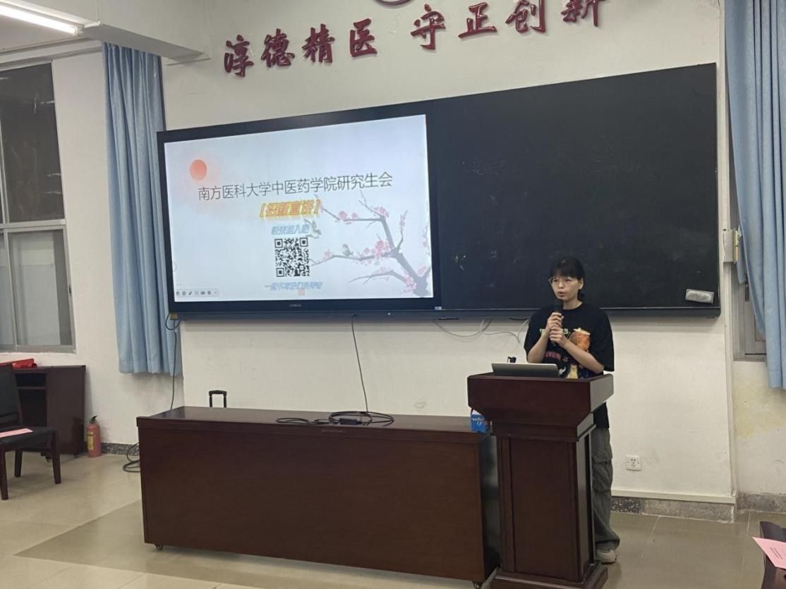 随后,学院研究生会工作人员梁晓彤向新生们介绍了中医药学院研究生会的组成和既往举办的活动和取得的成绩,同时诚挚地邀请新生们加入学院研究生会,在研会这个宝贵的舞台上发挥自己的才能、锻炼自身的能力、结交到志同道合的朋友。