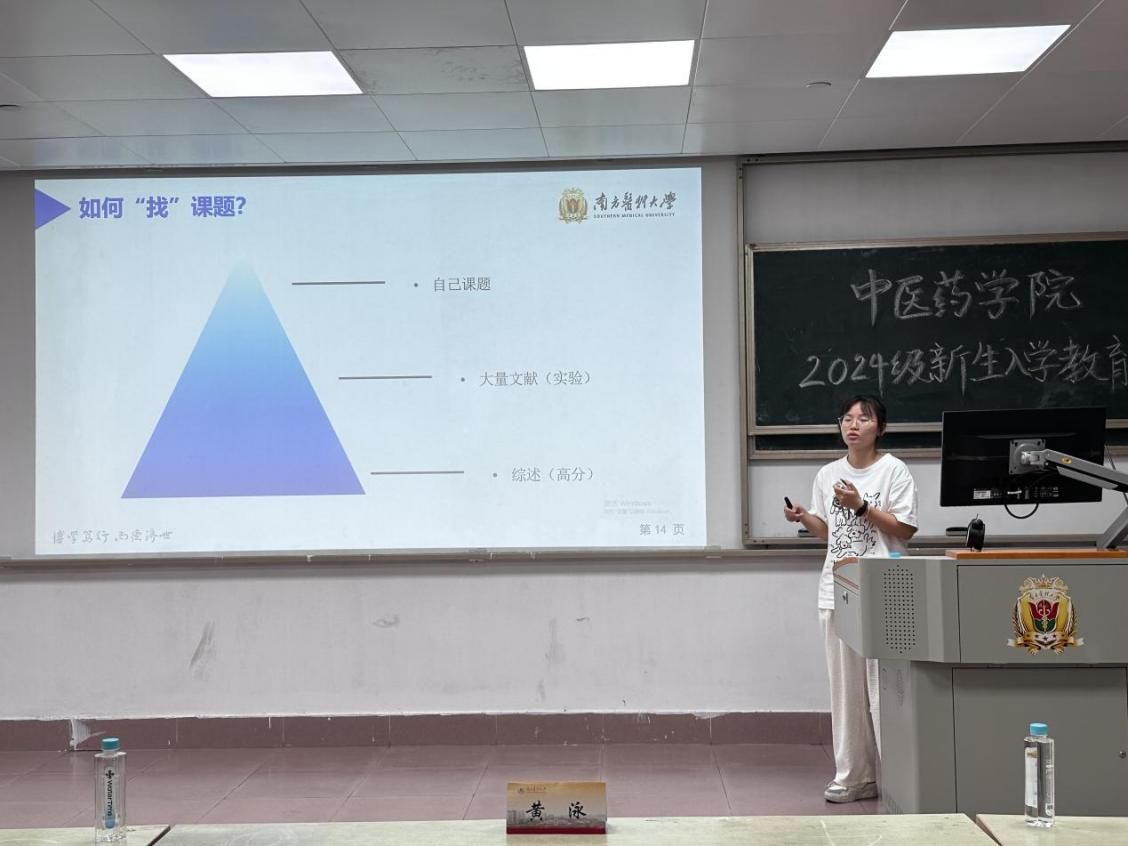 2021级中药学博士胡义和2024级中西医结合博士秦梦晨随后分享了自己做科研的经验,向新生们描绘做科研的大致框架和传授做科研的技巧,分享主要包括常用的科研技术、如何培养科研兴趣、如何处理好读研期间各类人际关系、如何阅读文献、如何投稿、如何规划实验安排等等各方面,让新生们对做科研有了相对系统的了解。
