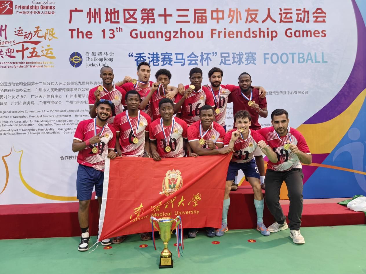 10月26日至27日,广州地区第十三届中外友人运动会在广州天河体育中心成功举行。我校由34名留学生组成的代表队参与了足球、篮球、乒乓球、羽毛球、保龄球和网球六个项目的角逐。经过两天的激烈竞争,我校运动员在男子七人足球赛中夺得冠军,男子篮球获得第四名,乒乓球男子单打取得第三名,羽毛球双打斩获第五名。