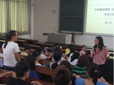 管理系教授姚卫光详细介绍了公共事业管理专业(医院管理)的课程设置,师资力量,办学历史,学生发展方向以及优秀校友,并和学生进行了有效互动,详细解答了学生的疑问。