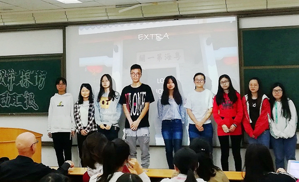 汇报后,John表达了对同学们口语水平的肯定,以及对广州地域文化的兴趣。他鼓励同学们继续在生活中大胆说英语,一如他在课堂上做的那样。随后,吴让科也分享了他对广州历史文化进程的思考以及对学生的期许。最终,经过评选,第三组成员荣获一等奖,第五、六组荣获二等奖。