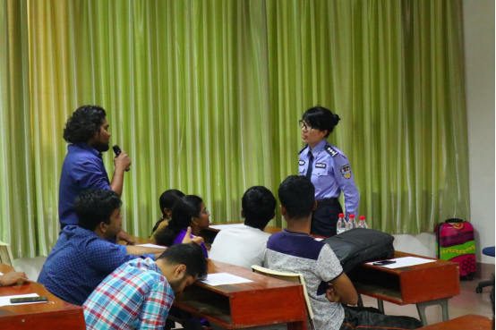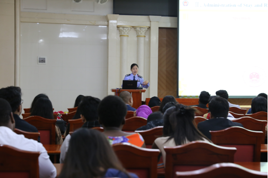 近日,国际教育学院邀请广州市公安局禁毒支队警官曹玉霞和广州市出入境管理支队警官郭立影来校,开展了两场中国法律法规、禁毒知识宣传专题讲座。来自印度、泰国、印尼、菲律宾等30多个国家的本硕博来华留学生和国际教育学院教师参加了活动。