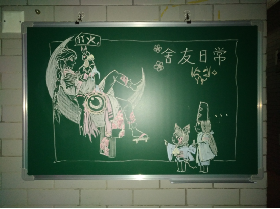 活动过程中还出现了一些有趣的小插曲。某个宿舍所设计的黑板报在一次更新后没有仔细校对,出现了一两个错别字,当他们走到自己负责的黑板前想校对时,却惊讶地发现不仅错别字早已被改正,黑板上还被涂上了其他可爱的插画,除此之外,黑板上还贴了几张留言便利贴,内容都是同学们对自己的愿望以及对黑板设计者的夸赞。虽然只是这样一个小插曲,却也体现出春草园同学们的机智可爱,同学们的留言也一定会对宿舍间的交往起促进作用,为营造春草园和睦友善的气氛提供前进的方向。