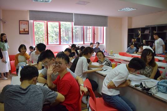 第一阶段的相互比拼结束之后,14支队伍到达第二个竞赛点——春风二栋多功能房。每一支队伍在抽取到相应的题目并进行25分钟的准备之后,开始接受评委和同学们的检阅。由于前期进行了充分的准备,14支队伍顺利完成了对自己项目的展示,并在面对评委的提问时,从容表达了自己的想法。