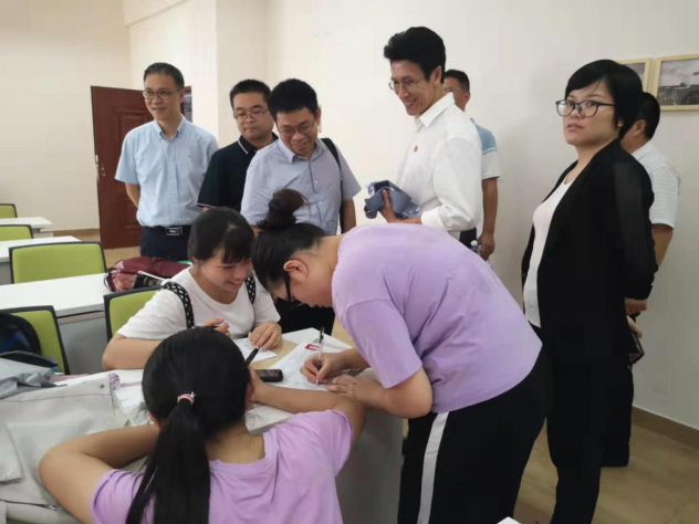 李文源一行首先来到了学院报到处,仔细询问了新生报到情况。学院新生已报到560人,报到率98.2%。