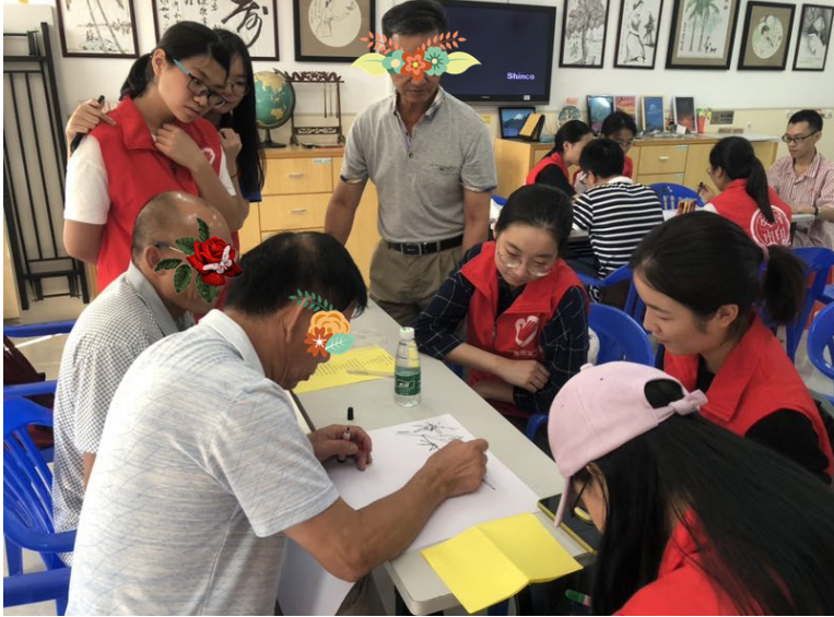 经过短暂的中午休息后,志愿者和康复者们分为三组,分别选取了“中国书画”“粤剧脸谱”以及“顺德美食”三个主题,完成手抄报的绘制。期间,有些康复者一开始不敢参与绘制,但经过志愿者的引导和鼓励,也逐渐敢于去尝试,竞赛氛围活跃起来。一小时后,每个小组分别展示自己的作品以及发表自己独特的见解,色彩绚丽的水彩画,勾勒出的不只是他们今天的行程和经历,更描绘出他们世界的色彩与形状。
