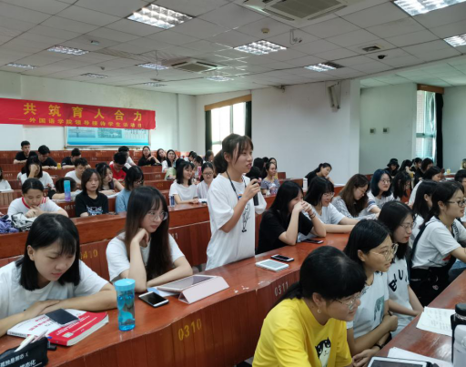 英语系主任邓文华用自己在美国的经历向大一学生说明了口语交流氛围的重要性,希望同学们勤学苦练,摆正心态,敢于迎接挑战。