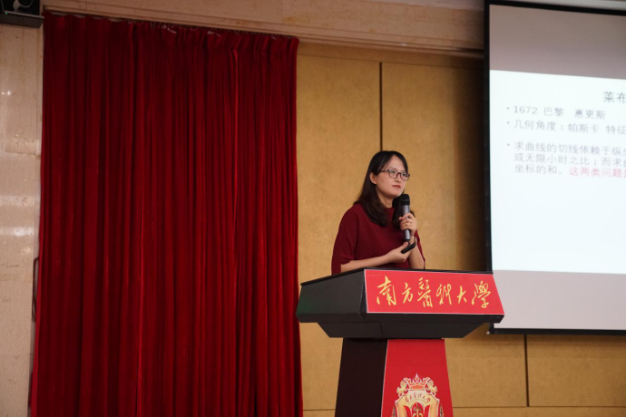 张明慧通过微积分的发展历史告诉同学们:人对世界的把握是从生动的直观开始,进而达到抽象概括,也就是从感性认识到理性认识的过程。而数学正是人类抽象思维的伟大结晶。张明慧通过追溯微积分的发展脚步,让大家领略数学之美。首先,数学以抽象的形式,追求高度精确、可靠的知识。数学的抽象舍弃了事物的其他一切方面而仅保留某种关系或结构;同时,不仅数学的概念是抽象的,数学的方法也是抽象的。数学具有一套特殊的逻辑推理规则,来达到确定无疑的结论,这种推理模式已成为人类思维方法的一种典范,此乃数学影响人类文化的突出方面;其次,数学具有最大限度追求一般性的倾向,这种倾向使数学具有了广泛的适用性。数学越来越成为一种普遍的科学语言与工具,在推动其他科学和整个文化的进步方面起着巨大的作用。