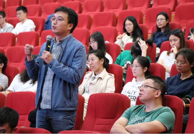 互动答问环节,教师和学生提出了自己疑惑和问题,包括科研与产品转化、前沿科技信息的获取、导师的选择、学习经验等,涂圣贤一一耐心地进行了解答。