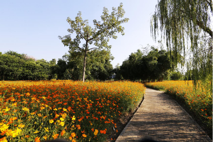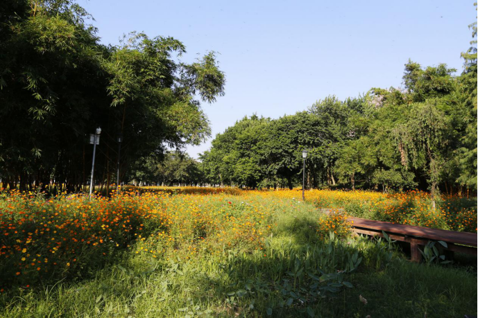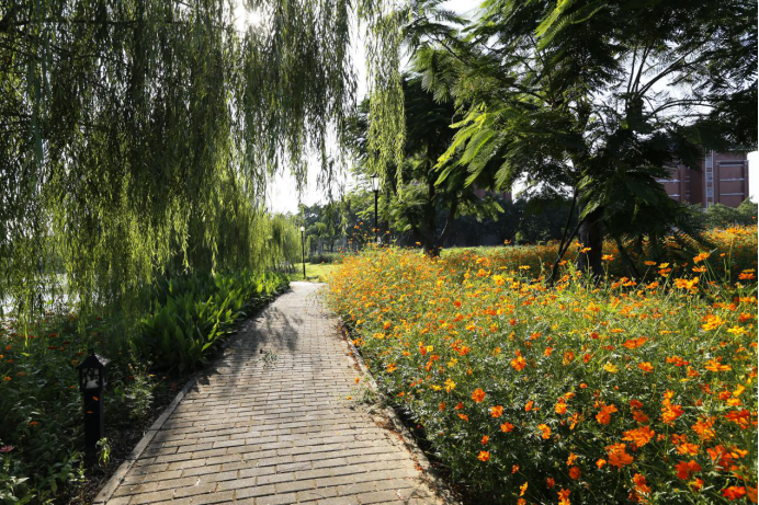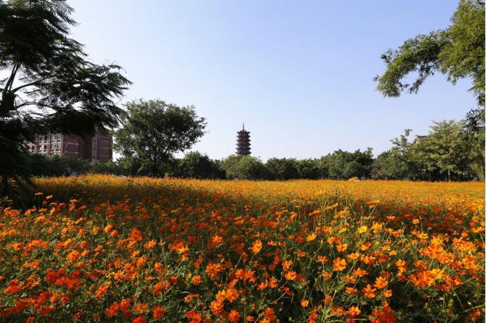 顺德校区南面的东岭周边,种植有成片的千叶菊,从秋天到冬天,一直开得兴旺蓬勃,烂漫映日,笑煞春风。
