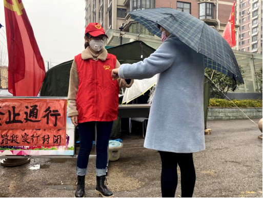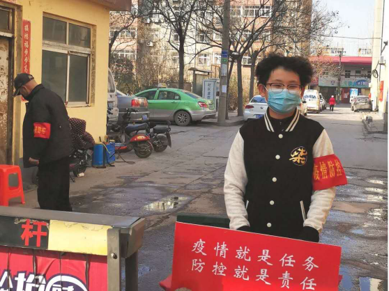 中医药学院本科生第三党支部预备党员石佳在山东兖州的社区协助管理人员测量体温、进行出入登记等。她说,是前线那些医务工作者们以及无数“逆行者”们点醒了她。想到“若有战,召必回”的口号,想到党旗下国旗下的誓言,她知道,到了为人民服务的时候。她主动请缨,参与到抗“疫”志愿服务当中去,用微小的力量发着光。