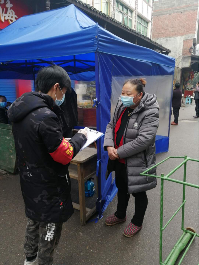 李傲霜今年寒假返回重庆与家人团聚,在疫情爆发后,作为学生骨干的他,积极响应当地政府号召,毫不犹豫地率先报名加入了志愿者“红魂劝导队”。在疫情持续期间,李傲霜从事了入户排查、疫情防控知识宣传、居民出行劝导、交通要道卡点值守等社区的疫情防控工作。李傲霜说:“通过和所有相关工作人员的一起努力,目前取得了良好的防控效果,也发现村民们的安全意识有了很大改善,但还有一些工作需要做得再细致,比如农村老年人因为没有口罩不能出门买生活必需品等问题,我们仍在想方设法去帮助他们。”