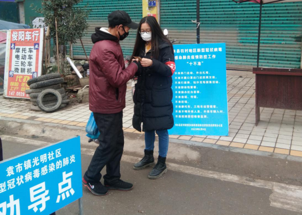 疫情发生后,许玲玲主动向当地政府递交了志愿服务申请,参与镇上的疫情防控工作。起初的工作是上门对返乡人员进行全面登记排查和疫情防控宣传。道路交通设卡后,她就调去驻扎路口,检查过往车辆及人员的“通行证”、“健康证”,检测体温、发放宣传资料等。卡口撤除后,她又到街上巡逻,耐心劝导没有佩戴或不规范佩戴口罩的居民、劝返扎堆集会的群众。