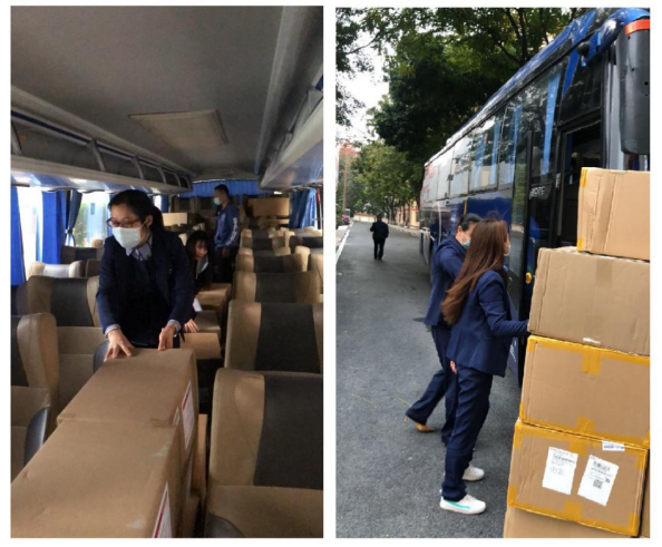 我多次协助学校各单位进行防控物资调配工作。3月17日中心我接到去黄埔区运输防护服的任务,主动请战前去运输,由于值班期间,装卸人手紧缺,我积极参与搬运物资。所有防护服装满车时,全体搬运人员已来回跑了30多趟,虽然当天气温还略带寒意,我却已是大汗淋漓,顾不上休息马不停蹄地将物资拉到学校又帮忙缷下,一番忙碌下来工作服又被汗水浸透,一想到哪怕能够尽早1分钟将防护服送到一线医护人员手中,自己的汗水就流得很值,毫无怨言。