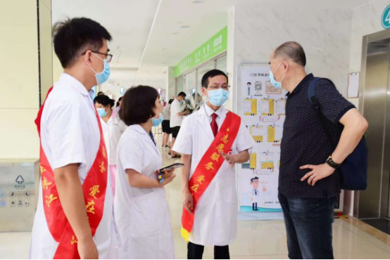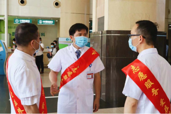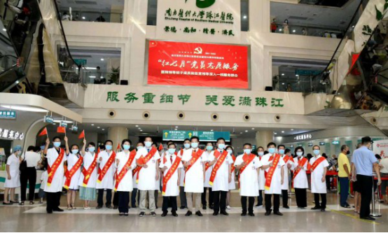 7月1日,珠江医院党委领导班子全体成员带领机关处级以上近20名党员干部,深入疫情防控、复工复产一线,以普通志愿者身份,开展“红七月”党员志愿服务。
