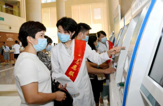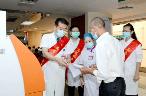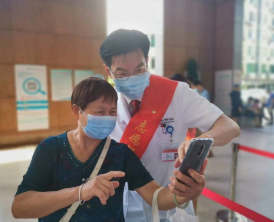 门诊大厅挂号处,副院长郭洪波带队在自助服务机前指导患者自助挂号、缴费、打印报告等,“刷一下身份证就可以自己操作,不用每次排长队。需要复诊或有其他疑问,您还可以通过珠江医院互联网医院向我们医生咨询。”