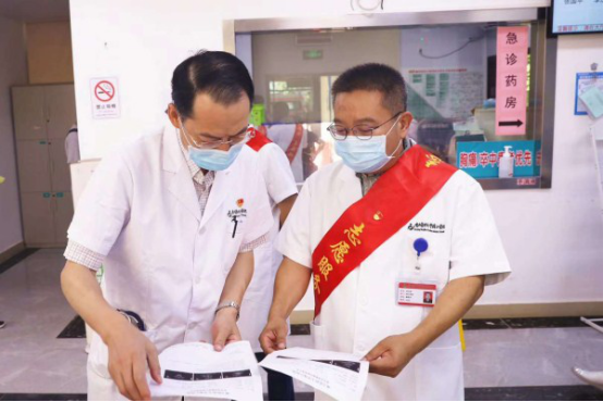 副院长吴汉森带队在急诊新区开展志愿服务,协助医护人员接诊、为急诊留观病人翻身、更换尿袋等,期间全程跟进了一名突然昏迷的急诊患者的转入与抢救,对流程操作作出了进一步规范要求。