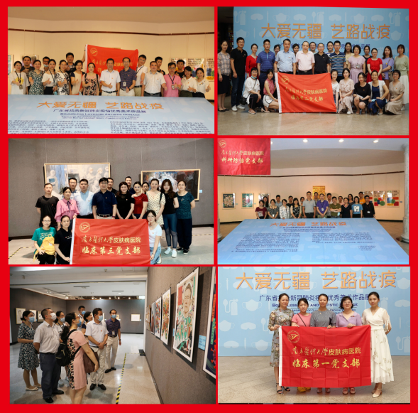 为深入贯彻落实习近平总书记关于新冠肺炎疫情防控工作的重要讲话和重要指示批示精神,进一步加强党员政治思想教育,坚定理想信念,牢记初心使命,在“七一”前后,皮肤病医院各党支部组织前往广州艺术博物馆观看《“大爱无疆、艺路战疫”——广东省抗击新冠肺炎疫情优秀美术作品展》。