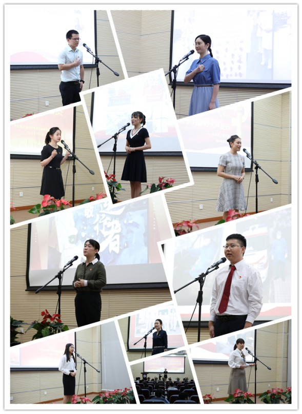 院党委书记杨斌带领新党员上台面向党旗庄严宣誓,全体党员重温入党誓词。“为共产主义奋斗终身”誓言铿锵,承诺掷地,引导着全院党员在历史长河中追寻初心使命,强化党的意识,牢记党的宗旨,进一步坚定理想信念,激发爱党爱国之情。