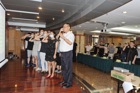 最后,进行新党员入党宣誓,14名预备党员在党旗下举行庄严的入党宣誓,与会全体党员也一起重温了入党誓词。
