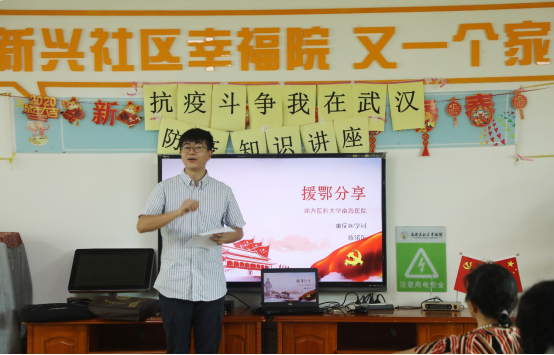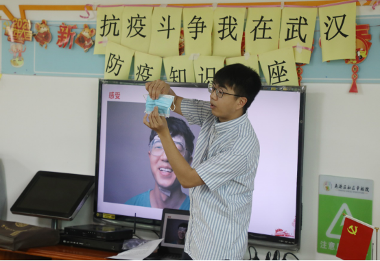 7月7日,里水镇新兴社区幸福院举办了“抗疫斗争,我在武汉”防疫知识讲座。第七附属医院陈铭乐受邀到场分享了在武汉抗击新冠肺炎疫情的故事,给幸福院长者宣传健康防疫知识,现场演示了正确的洗手方式和脱戴口罩。