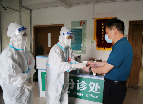 “感谢院领导对我们的关心,天气炎热,喝上一杯凉茶,顿时感到神清气爽。”7月17日上午,在发热门诊,一位护士从医院党委副书记、工会主席孙健接过送来的凉茶后感激地说。