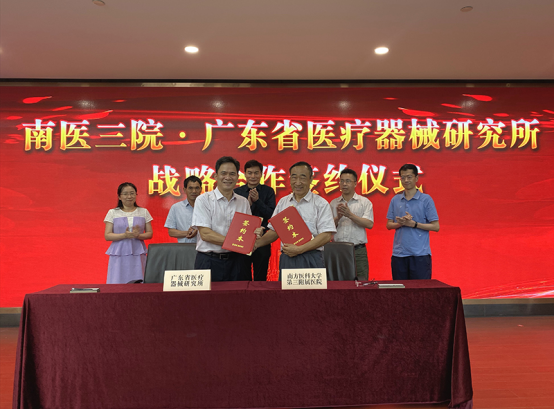 8月13日下午,第三附属医院与广东省医疗器械研究所举行战略合作签约仪式。三附院院长蔡道章与广东省医疗器械研究所副所长陈军代表双方签署战略合作协议书。根据协议,双方将充分发挥各自专长,致力于发挥科技创新与医疗器械行业的优势,共同开展骨科智能化设备和修复材料相关技术的基础与应用研究。