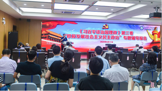 为深入学习宣传贯彻《习近平谈治国理政》第三卷,加深对社会主义民主政治的理解和掌握,9月17日下午,第三附属医院邀请广东省委党校教授马俊军作题为《学好用好民法典》的专题辅导报告。医院党委委员,各党(总)支部书记,科室主任、护士长及机关部门负责人参加了专题学习。党委书记许明辉主持辅导报告会。