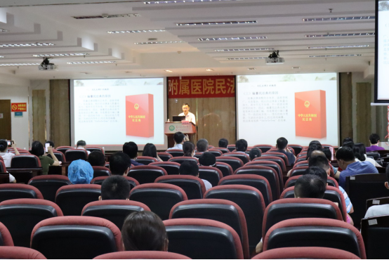为认真学习宣传贯彻《民法典》,提升医院的管理能力和水平,增强医务人员的法律意识,9月17日,五附院举办《民法典》学习专题培训,邀请医院法律顾问刘乙龙律师前来授课。医院领导班子,各部门正副职,科室主任,护士长,支部书记及相关人员参加了学习培训。医院副书记孙健主持培训。