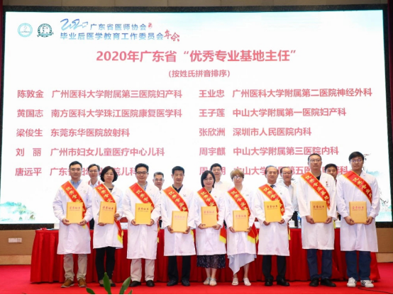 9月18-19日,2020年广东省医师协会毕业后医学教育工作委员会年会颁发了2020年广东省住院医师规范化培训“四个优秀”住院医师奖项,珠江医院康复医学科专业基地主任黄国志荣获广东省住院医师规范化培训2020年度“优秀专业基地主任”荣誉称号;重症医学科王华主任荣获广东省住院医师规范化培训2020年度“优秀指导医师”荣誉称号,这也是我省首次评选省级住院医师规范化培训荣誉称号。