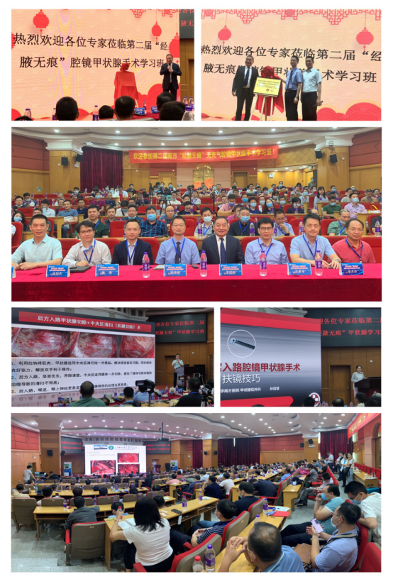 图1. 南方医院第二届“经腋无痕”甲状腺学习班暨中国抗癌协会甲状腺癌专业委员会甲状腺微创/美容外科培训基地揭牌仪式活动剪影