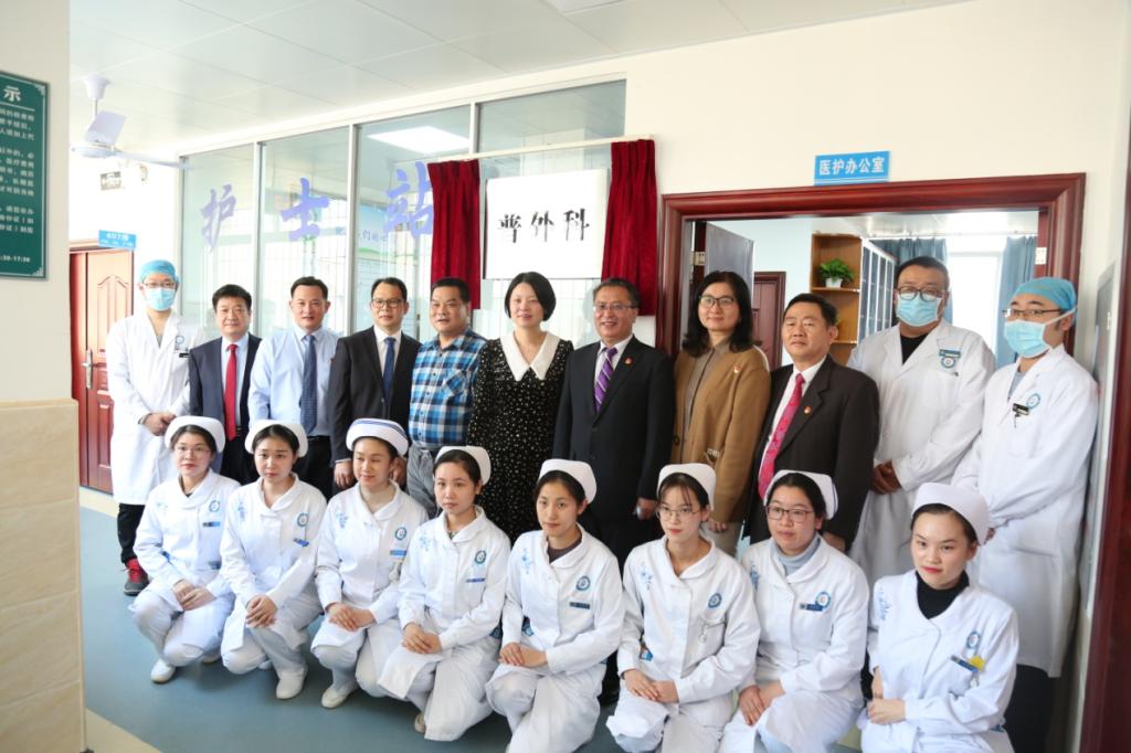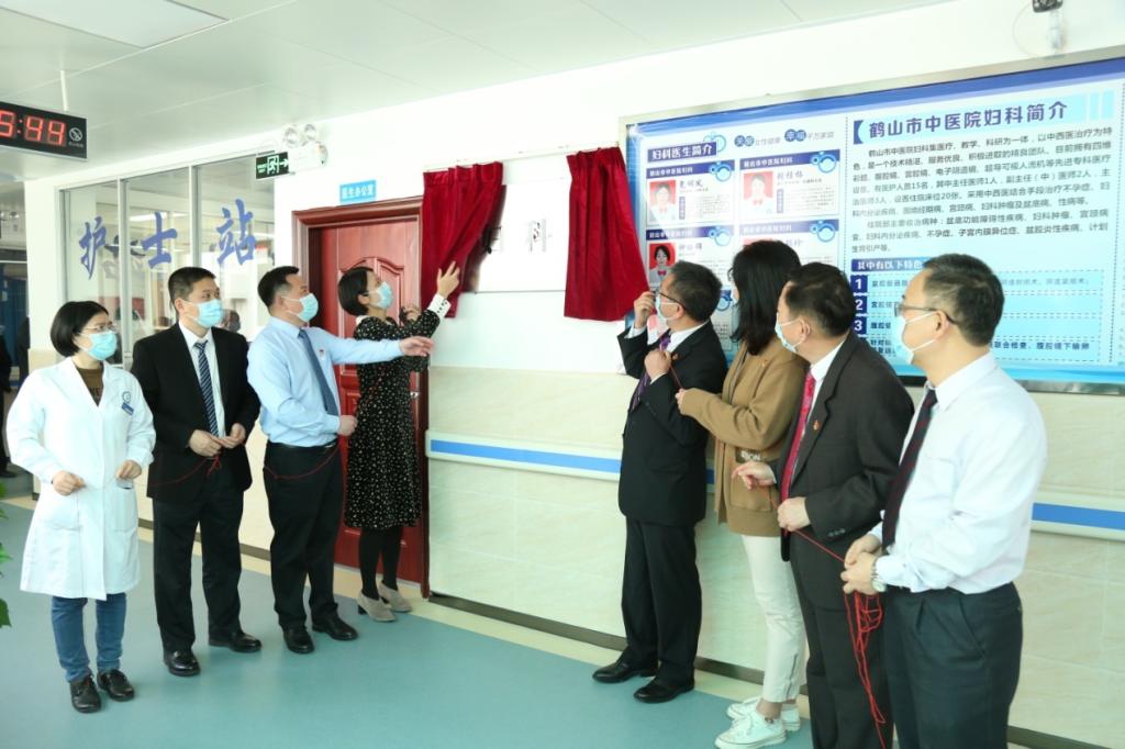 总结会前,鹤山市中医院邀请中西医结合医院院长李爱民、副书记皮玲、副院长潘清川与鹤山市政府副市长潘蕊、鹤山市卫生健康局局长源孔云、副局长叶志威及鹤山市中医院领导共同为鹤山市中医院新开设的血液净化中心、妇科、普外科逐个揭牌。