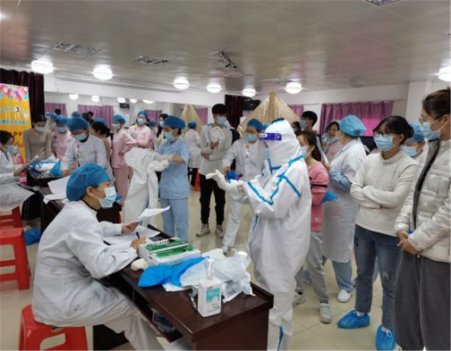 为做好医护人员应对大规模人群新冠病毒核酸标本采集的院感防控工作,有力提高抗击新冠肺炎等突发疫情的实战操作能力,近日,五附院感染管理科牵头组织开展为期5天的核酸标本采集组医务人员穿脱防护服考核。