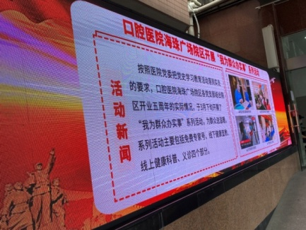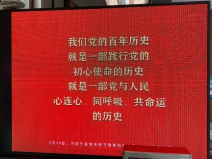 线下丰富学习载体,利用电子显示屏、LED横幅等载体,滚动播放党史学习教育相关标语、图文、视频,让来院患者都能看到,扩大社会宣传覆盖面,推动医院党史学习教育有声有色、入脑入心。
