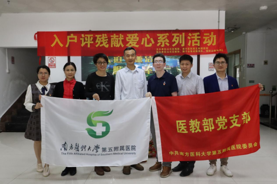 活动由五附院医教部党支部主要牵头对接,4月29日下午,医教部党支部组织了2名评残专家和4名支部成员,分成2个小组深入从化鳌头镇,为出行困难且疑似重度残疾人提供了上门评残服务,并为他们送上爱心小药箱。