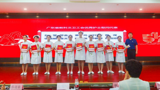 党委书记许明辉代表广东省教科文卫工会慰问优秀护士代表。