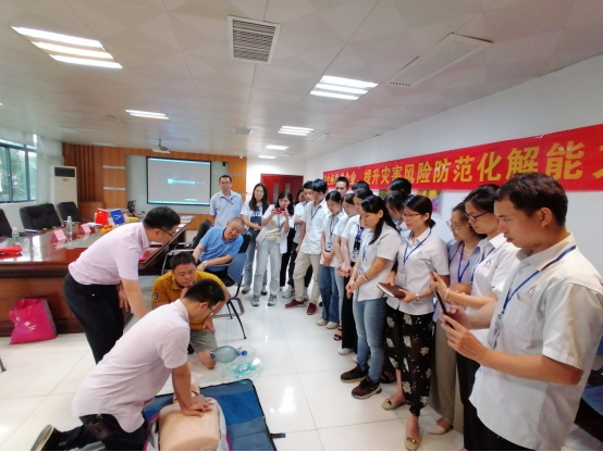 理论授课结束后,进行成人心肺复苏术、骨折及止血应急处理现场示范,重点讲解处理要点和操作步骤。公司员工纷纷利用模具进行练习,积极提问,现场氛围非常热烈。员工们表示,活动意义重大,获益匪浅,希望通过本次培训学习,切实提高防范化解风险的能力,并将所学教给身边人,共同为减少灾害发生贡献力量。