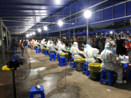 动员结束后,应急核酸采样队伍进行集中培训,迅速分配好物资,分批出发前往海珠区各核酸采样点,充实前线工作力量,高效为当地居民进行核酸采样,从白天奋战到凌晨,为广州抗疫工作贡献省口力量。